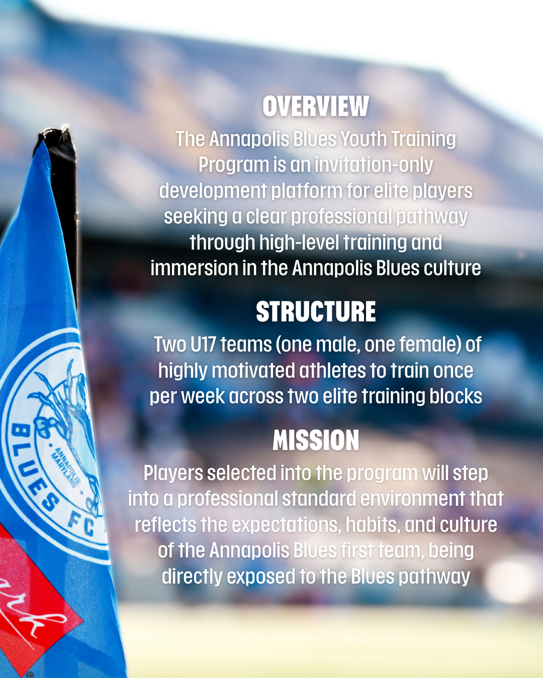 The Annapolis Blues Youth Training Program (YTP) is an invitation-only developmental platform for elite players seeking a clear professional pathway through high-level training and immersion in the Annapolis Blues culture.